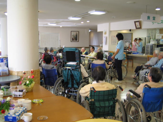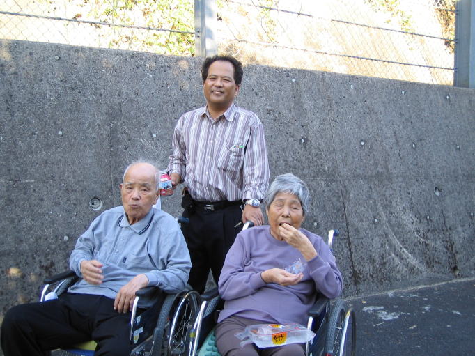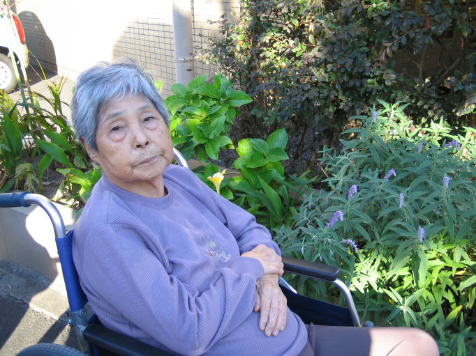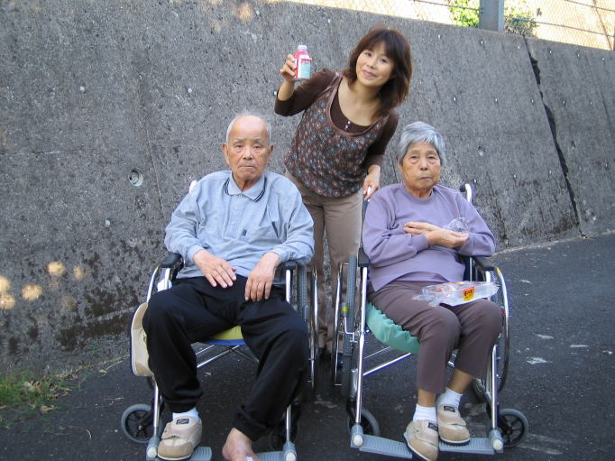 平成16年10月16日(土) 2人とも足元がすっかり弱くなって、以前と比べると、外出するのは気が重くなった。 天候も良かったので、施設の周囲を散歩してみた。 まわりの道路は狭くて、デコボコ。近くの八百屋の前を通ると、中から主人が出てこられて、みかんを2人にくださった。 ご主人も左半身に軽い麻痺があるような60歳代くらいの方だった。 ふたりとも喜んで口にしていた。